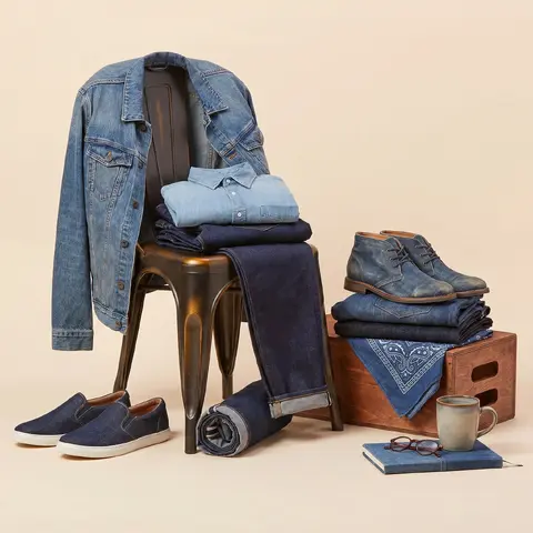 Что стоит иметь: прямая или слегка расширенная пара джинсов в тёмном индиго, денимовая куртка без избыточной детализации и хотя бы одна рубашка из шамбре (лёгкая, мягкая денимовая ткань, которую можно носить под пиджак).